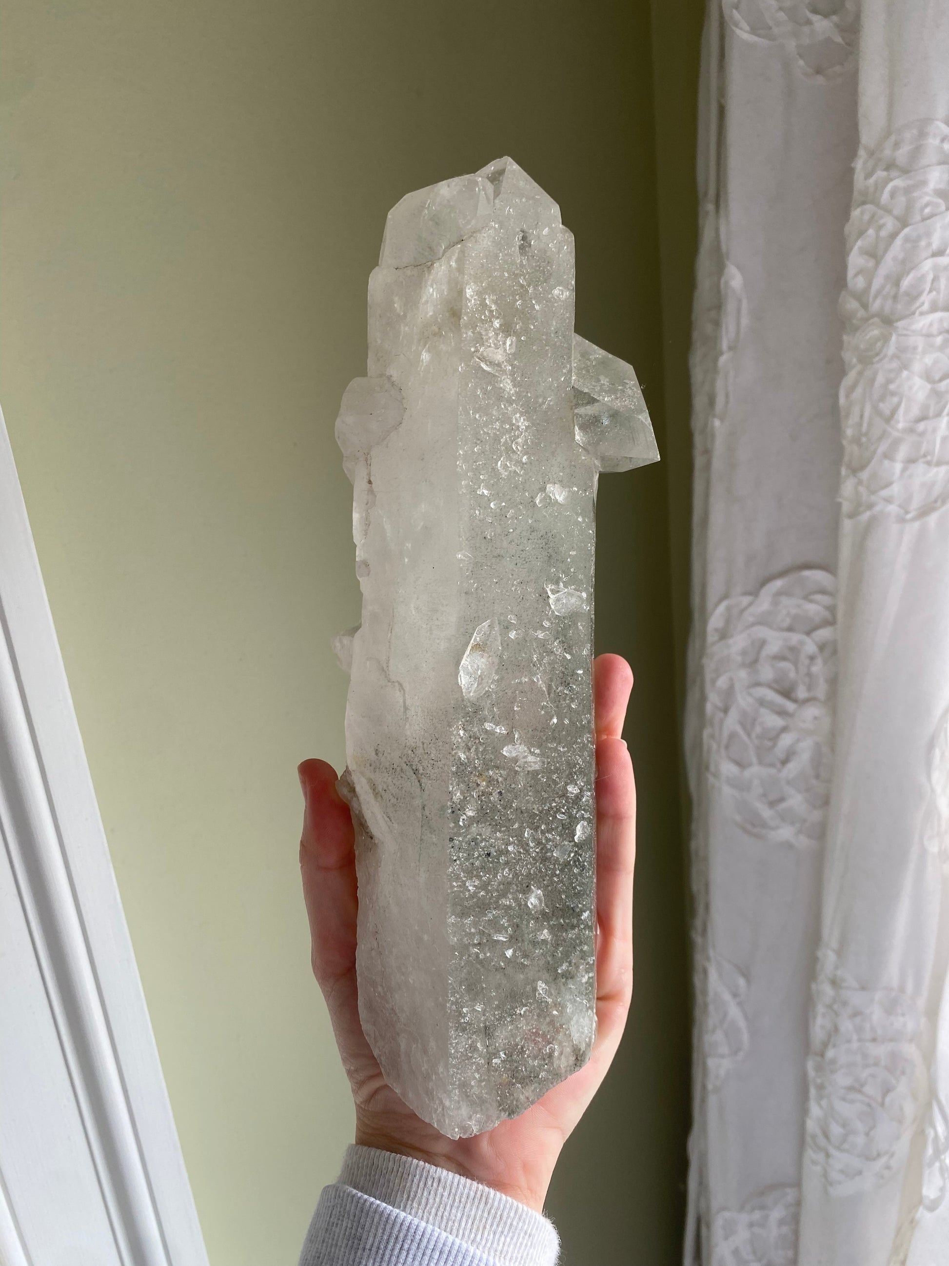 XL Chlorite in Quartz point. Statement piece. Chlorite quartz helps balance the chakras and unblock and release negative energy barriers.