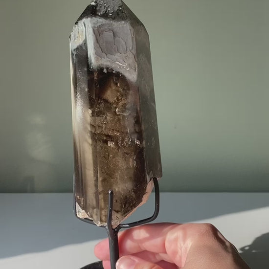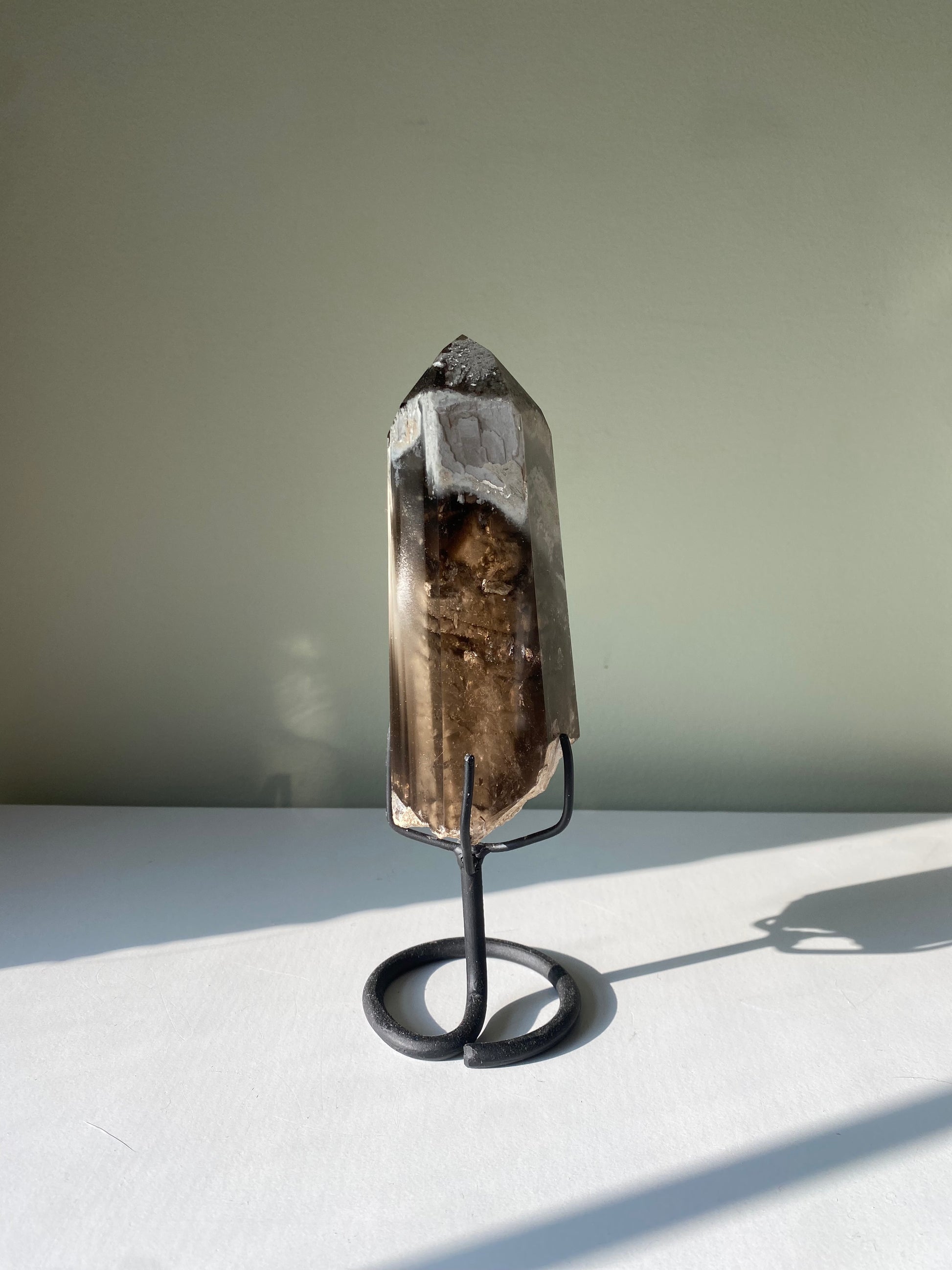 High quality polished Smoky Quartz w/ Phantoms on custom stand. Statement piece.