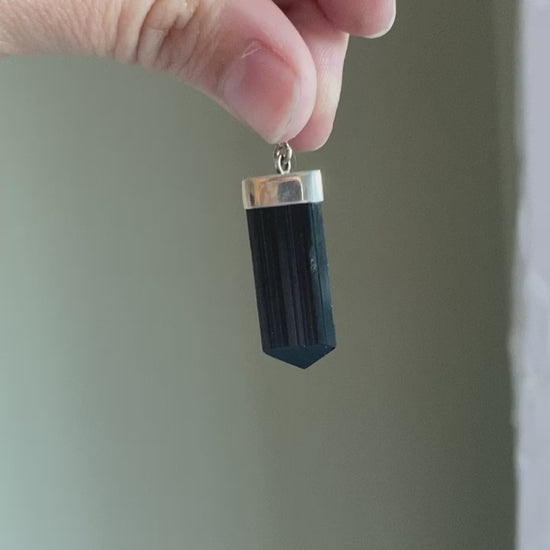 Lustrous, terminated black tourmaline pendant set in 925 sterling silver. Black tourmaline is a highly protective crystal that acts as an energetic body guard by warding off negative energies.